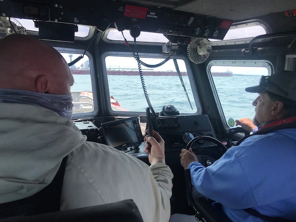Chris Rickard and Pat Beckman take a boat contracted by Enbridge to check on the pass through the Straits of Mackinac.Adrian Morrow/The Globe and Mail