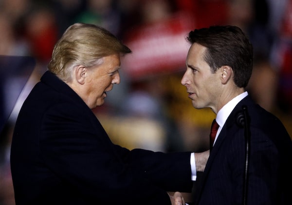 Senator Josh Hawley of Missouri, pictured with Donald Trump, has become the leading Capitol Hill critic of high-tech barons.Charlie Riedel/The Associated Press