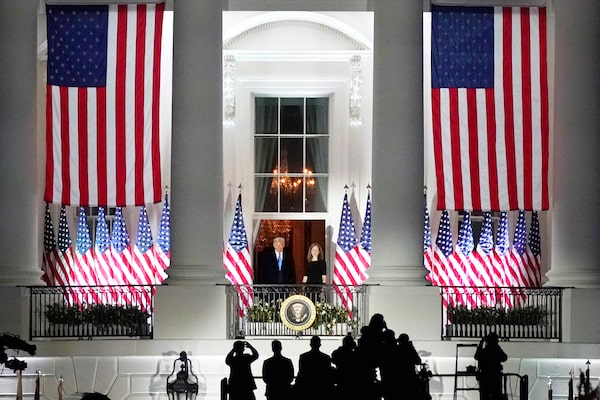 Washington, Oct. 26: President Donald Trump and Supreme Court Justice Amy Coney Barrett stand on the White House balcony after her swearing-in ceremony. She is the third judge Mr. Trump has picked for the nation's top court during his term.Carolyn Kaster/The Associated Press/The Associated Press