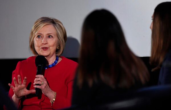 Former Secretary of State Hillary Clinton answers a question posed by student journalists during the Trailblazing Women of Park Ridge event in Park Ridge, Ill. on Oct. 11, 2019.The Canadian Press
