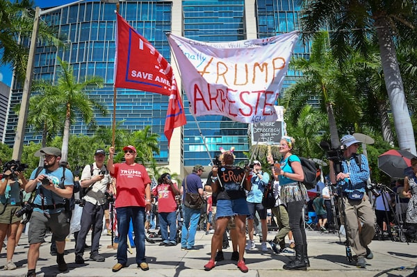 Mr. Trump supporters and protesters gathered outside the federal courthouse where the former president would be appearing. But supporters were noticeably few hours before the appearance — far outnumbered by the hundreds of journalists from the U.S. and around the world who have converged on downtown Miami for the historic occasion.