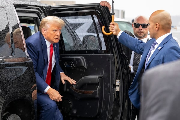 Former President Donald Trump exits his vehicle before he boards his plane at Ronald Reagan Washington National Airport, on Aug. 3.Alex Brandon/The Associated Press