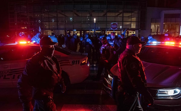 Detroit police keep Trump supporters and counter demonstrators separated during protests outside the TCF Center, in Detroit, Mich., on Nov. 5, 2020.SETH HERALD/AFP/Getty Images