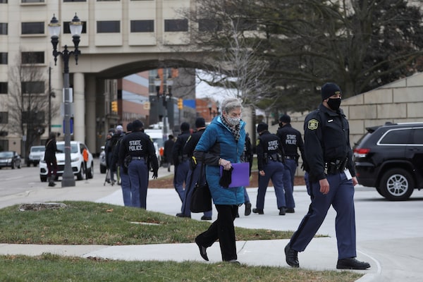 In Michigan, legislative leaders shut down the state capitol building in Lansing Monday because of unspecified “credible threats of violence,” according to the office of the state senate’s majority leader. Only the state’s 16 members of the Electoral College, governor, lieutenant-governor and a handful of staffers were allowed in. The electors were escorted to the building by police.