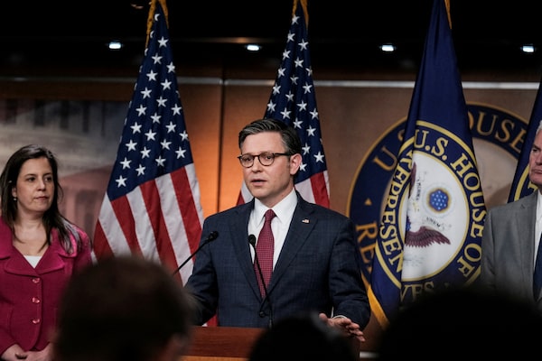 U.S. House of Representatives Speaker Mike Johnson speaks to reporters during a weekly press conference at Capitol Hill in Washington on April 16.Michael McCoy/Reuters