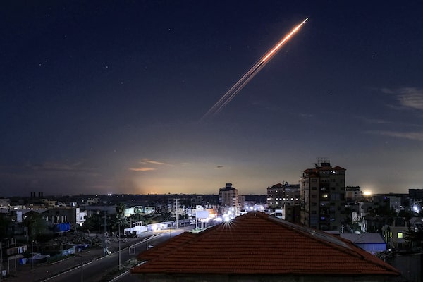 A missile launched from Iran seen from the Bureij camp for Palestinian refugees in the central Gaza Strip on Sunday.EYAD BABA/AFP/Getty Images