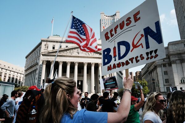 People participate in a rally and march against COVID-19 mandates on Sept. 13, 2021 in New York City.Spencer Platt/Getty Images