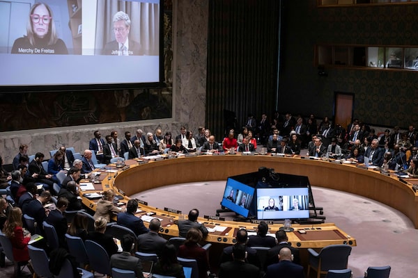 The United Nations Security Council holds an emergency meeting on the U.S. military operation in Venezuela at UN headquarters, on Monday.DAVE SANDERS/The New York Times