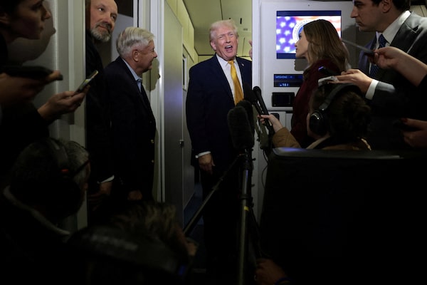 U.S. President Donald Trump speaks to reporters aboard Air Force One en route from Florida to Joint Base Andrews in Maryland on Sunday.Jonathan Ernst/Reuters